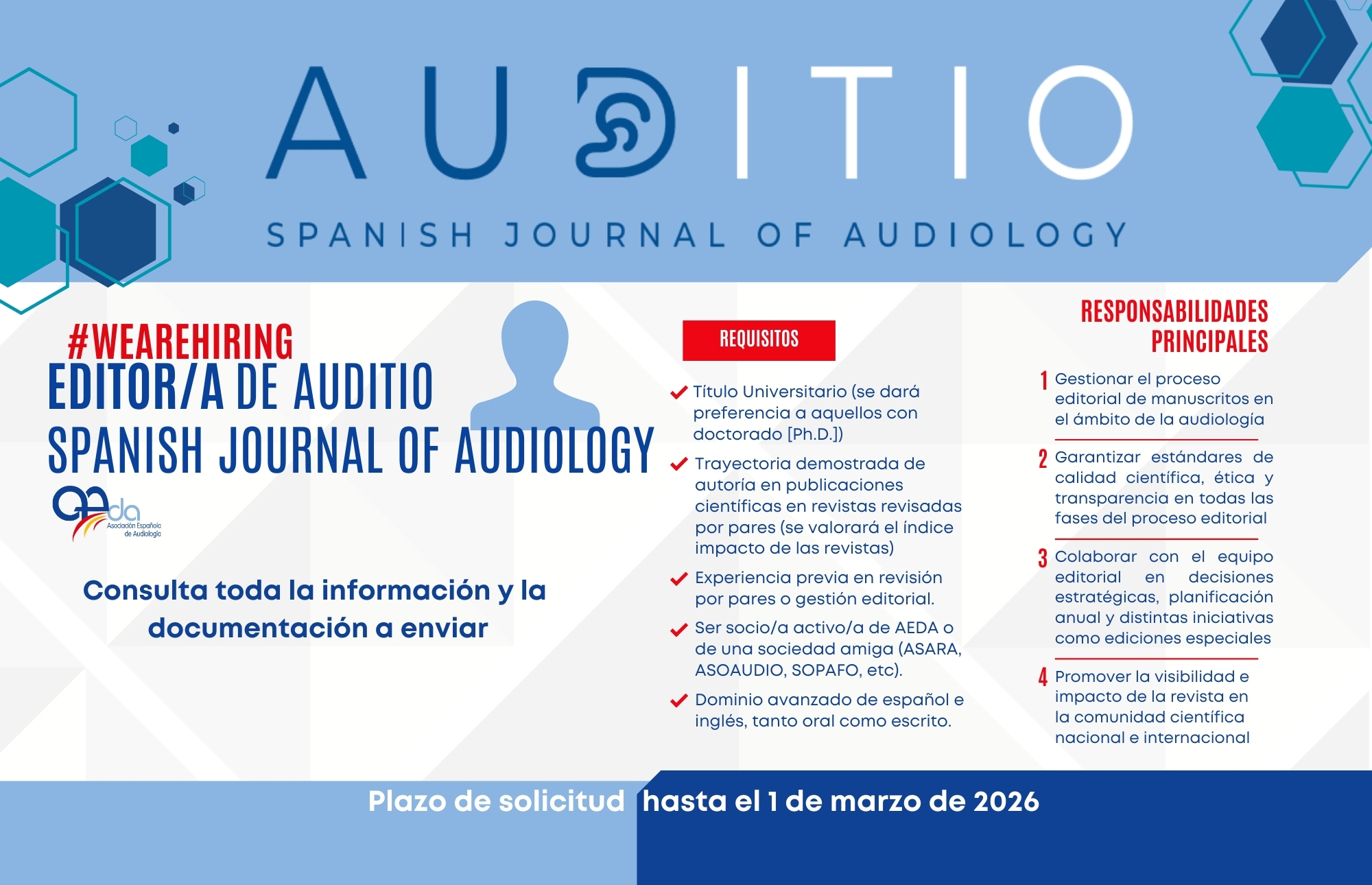 AUDITIO busca Editor/a: Súmate al equipo editorial de la Spanish Journal of Audiology, la revista científica de AEDA