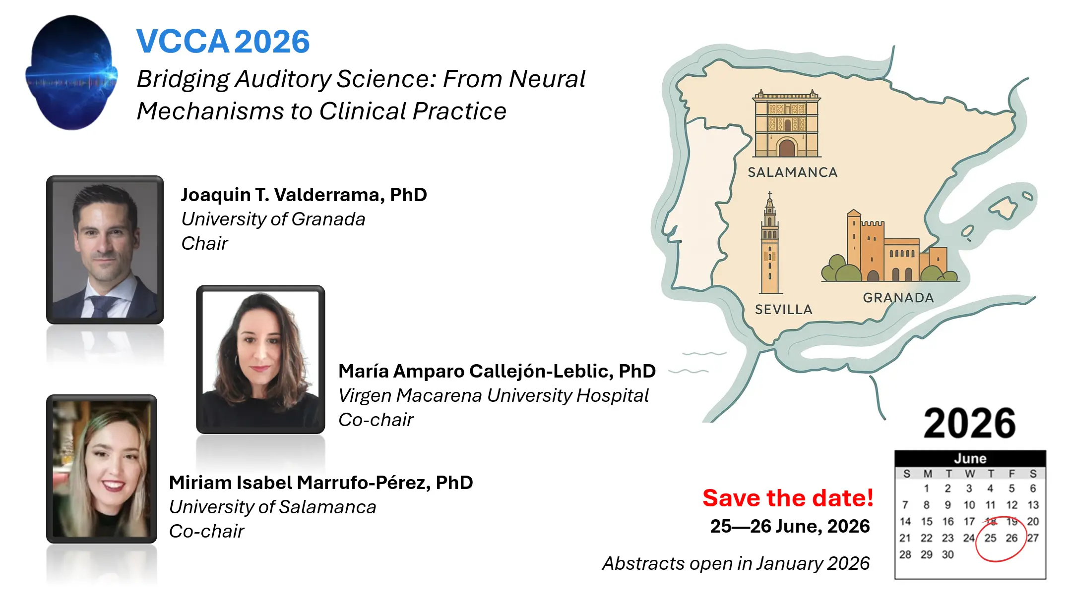 09 Ene La Conferencia Virtual sobre Audiología Computacional (VCCA) tendrá lugar en Granada el 25 y 26 de junio de 2026